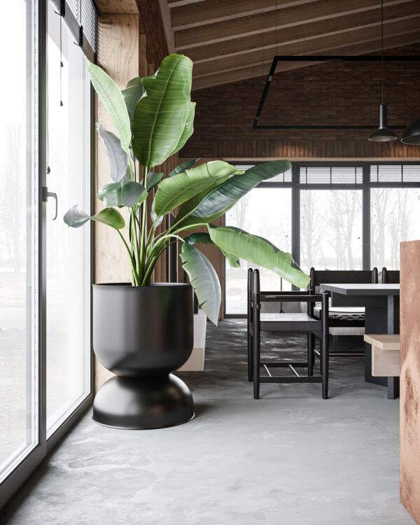 An oversized unique plant stand looks like a giant’s egg cup.